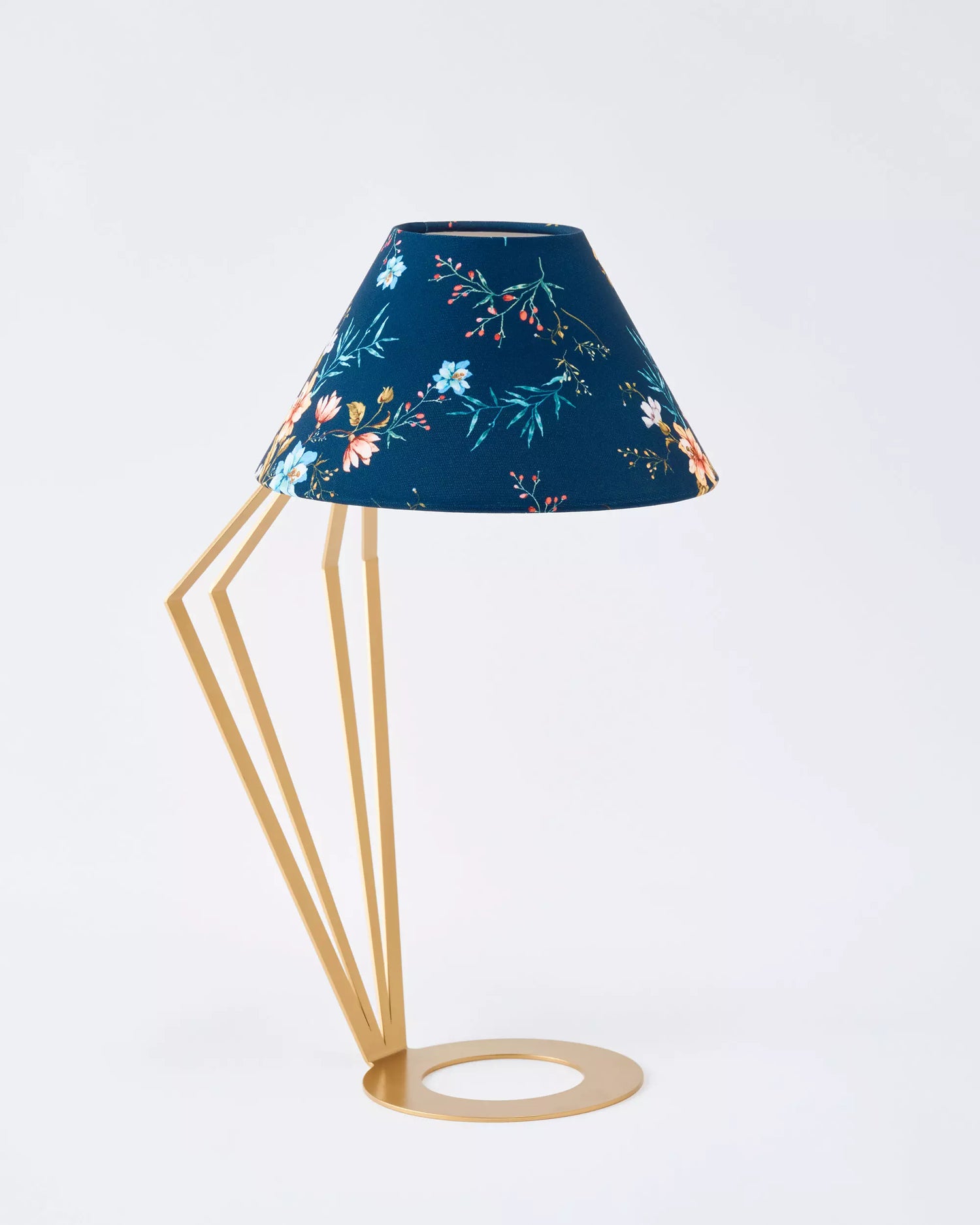 Un connubio perfetto tra design moderno e dettagli raffinati, la lampada da tavolo ARACHNE' è il complemento d’arredo ideale per chi cerca eleganza e stile. La struttura geometrica in metallo dorato conferisce un tocco di contemporaneità, mentre il paralume, decorato con un delicato motivo floreale su fondo blu, dona un'atmosfera romantica e accogliente. Ideale per arricchire la zona living, la camera da letto o uno studio con un elemento di personalità, ARACHNE' combina funzionalità e arte in un unico pezzo.