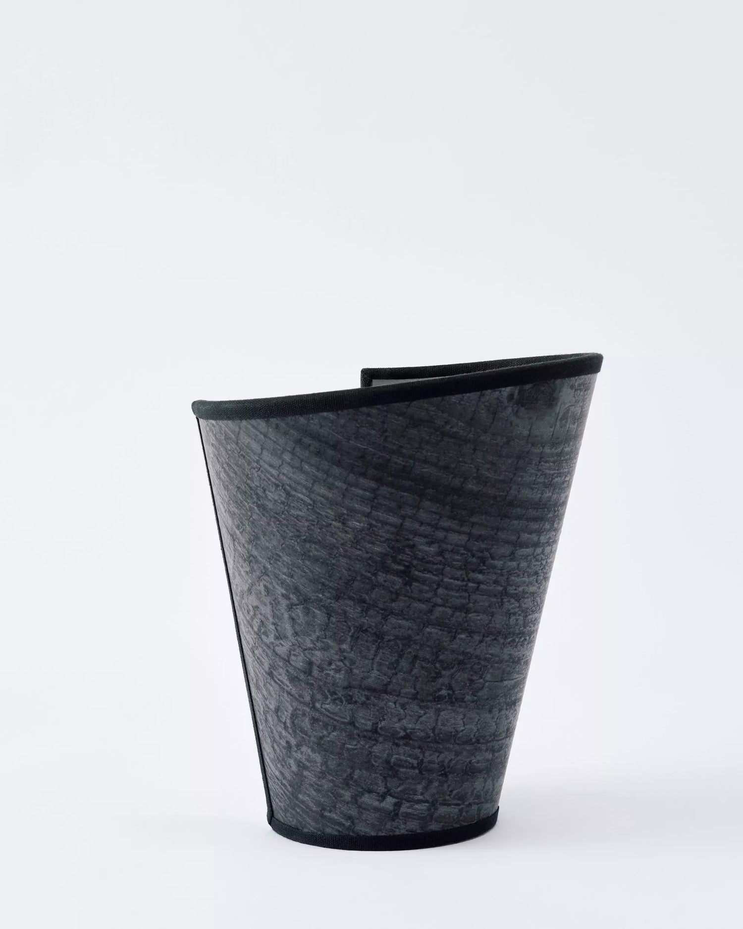 La forma conica esalta la verticalità del fascio di luce, direzionato ad illuminare volte o soffitti affrescati, suggerendo, all’occhio all’osservatore, la direzione. Inoltre, il tessuto, effetto Carbon Wood, si abbina con eleganza ad arredamenti in metallo e con le tonalità tipiche della tradizione Toscana come il legno e il cotto.